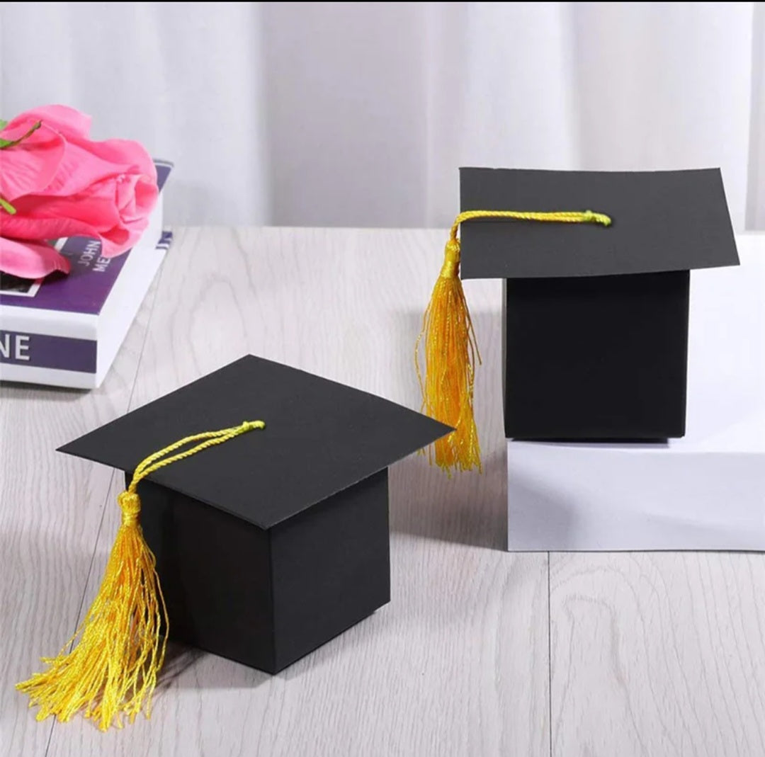 Maak jouw afstudeerfeest extra bijzonder met deze originele graduation hoed cadeaudoosjes! Perfect voor diploma-uitreikingen, schoolfeesten of als bedankje voor gasten. Het stijlvolle design in de vorm van een afstudeerhoed met een gele kwast zorgt voor een feestelijke en chique uitstraling. Vul de doosjes met snoepjes, chocolaatjes of kleine cadeautjes en verras jouw gasten op een unieke manier.