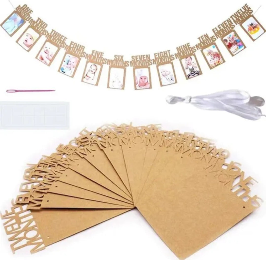 Leg de mooiste herinneringen vast en presenteer ze op een stijlvolle manier met deze prachtige fotoslinger! Perfect om de groei van jouw baby van maand tot maand te laten zien tijdens een eerste verjaardag. Deze slinger maakt jouw feest persoonlijk en onvergetelijk.