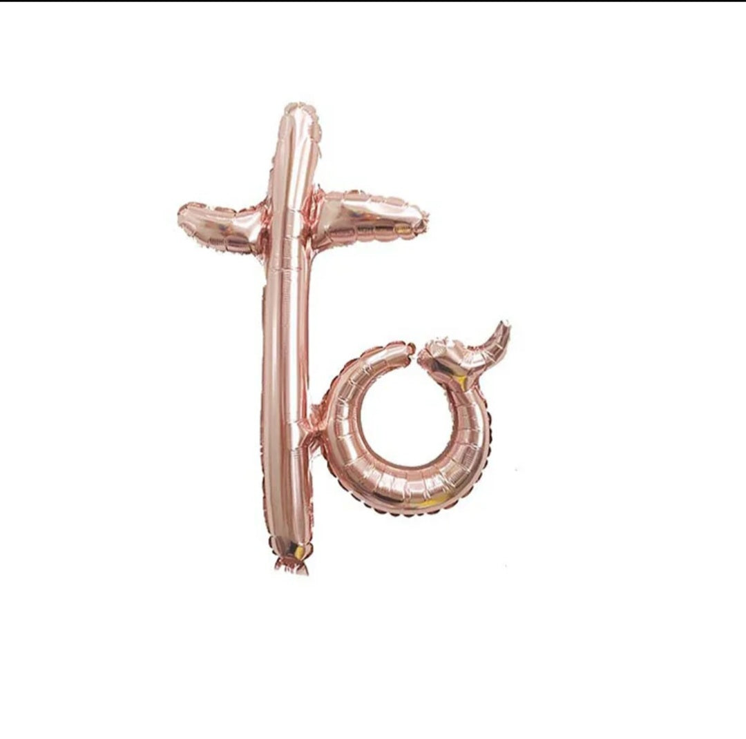 - Design: Roségouden folieballonnen in sierlijke letters “Bride to Be”.