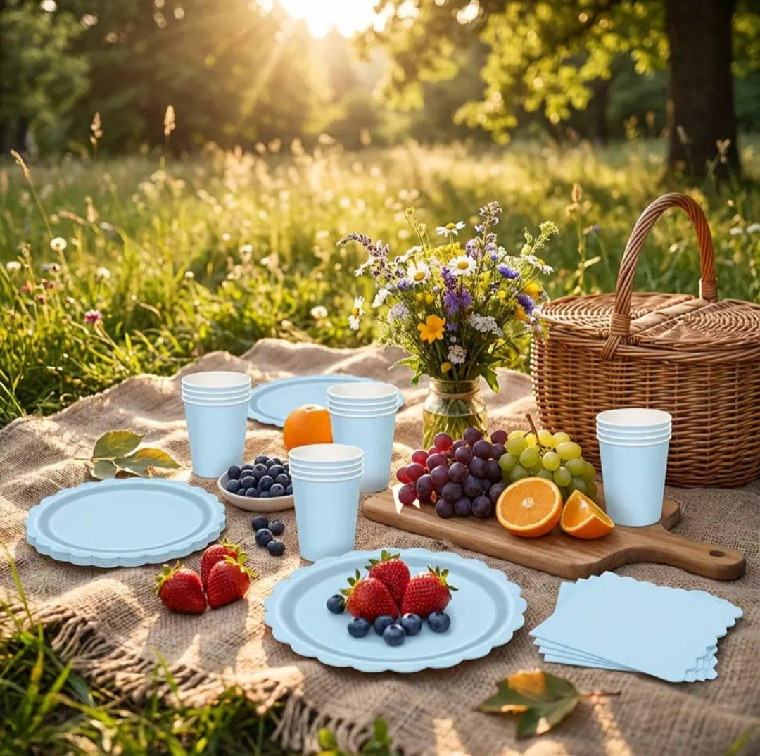 Complete Blauwe Wegwerp Serviesset – 175-delige Partyset voor 25 Personen