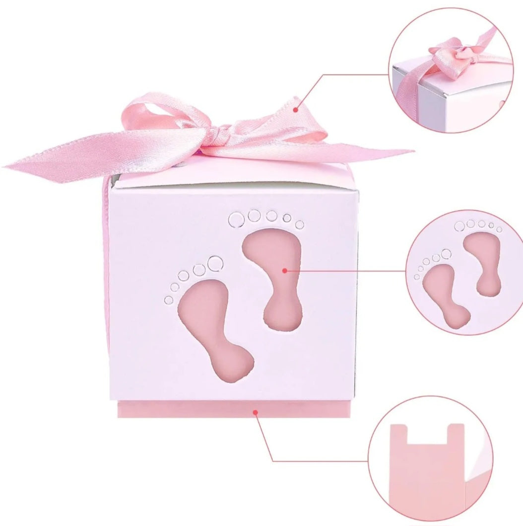 Maak jouw babyshower of geboortefeest extra bijzonder met deze stijlvolle roze cadeaudoosjes! Perfect om kleine traktaties, snoepjes of bedankjes in te verpakken. Het elegante design met uitgesneden babyvoetjes en een satijnen strik zorgt voor een luxe en schattige uitstraling.